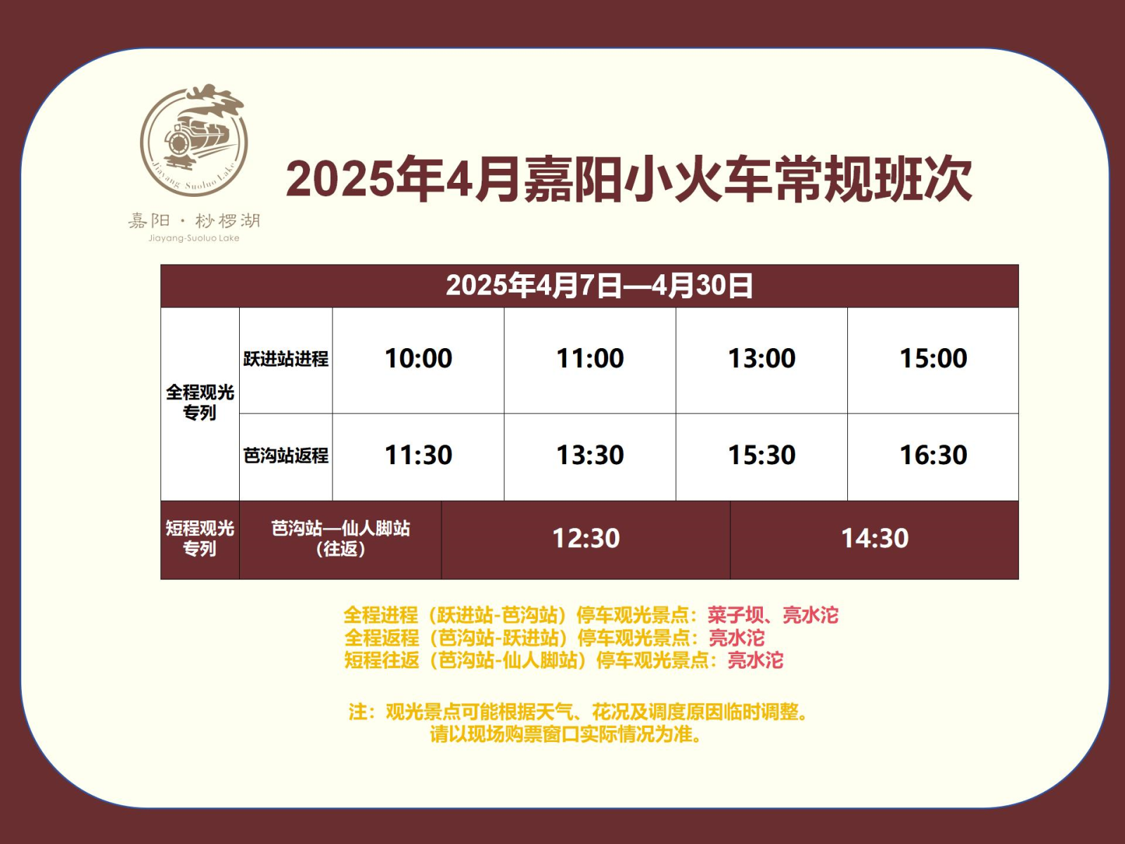 ㈣小火车观光专列短途往返:票价80元/人。
